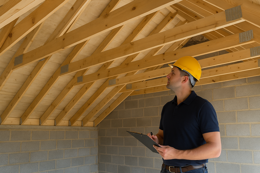 Engineers assess trusses, sheathing, and any visible structural weaknesses.